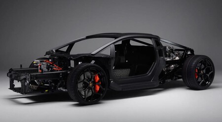 El futuro superdeportivo híbrido tendrá un monocasco de fibra de carbono más alto y largo que el de su antecesor que, según Lamborghini, también es un 10 % más ligero (el del Aventador es de aluminio) y hasta un 25 % más rígido. La marca italiana lo denomina "monofuselaje", un término bastante acertado si tenemos en cuenta que se inspira en la aeronáutica.