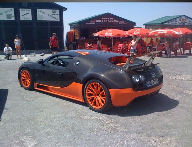 Pero no sólo los chicos de Diariomotor cazaron al nuevo Bugatti Veyron Super Sport junto a otros dos Veyron más, ya que nuestro lector Rubén también ha podido verlo y fotografiarlo con total detenimiento, primero aparcado en uno de los aparcamientos de la estación de esquí y luego parado en una gasolinera. Y es que 1.200 caballos tienen que beber mucho.