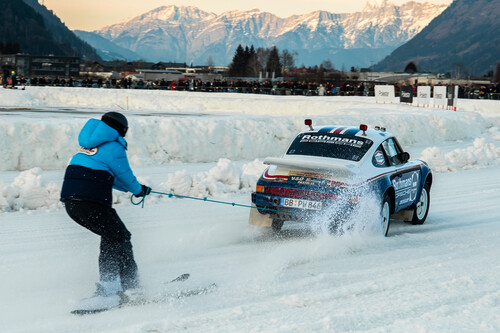 La coordinación entre ambos decide más que la potencia, y ahí reside buena parte de la magia de una disciplina tan antigua como impactante. En la pista también conviven iconos históricos y tecnología actual. El museo rodante de Porsche suele ser uno de los grandes protagonistas, con modelos míticos derrapando como si el hielo fuese su elemento natural.
