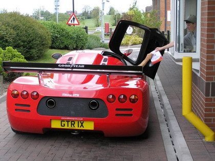 Siempre estamos hablando de utilitarios deportivos, pero esta foto viene a demostrar que también existe el concepto de deportivo utilitario, o al menos lo intenta. Así que ya sabéis, si estábais pensando en compraros un Ultima GTR pero lo veíais demasiado aparatoso para entrar a estos servicios de comida basura rápida, no hay problema.