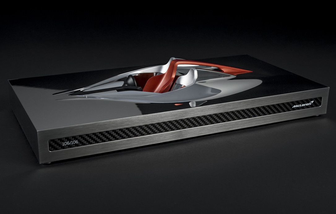 Además, esta pieza tridimensional de 3,6 kilogramos de peso y unas dimensiones de 400 mm x 205 mm x 80 mm, supone un vistazo tanto al exterior como sobre todo al interior del modelo, que como ya sabíamos desde hace tiempo gozará de tres plazas y un puesto de conducción central, a imagen y semejanza del mítico F1.
