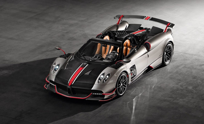 Pagani asegura que la carrocería de este descapotable -repleta de detalles en color rojo- es casi nueva por completo, y el profundo trabajo aerodinámico (splitter más grande, enorme alerón trasero, agresivo difusor, etc...) facilita una carga aerodinámica de 500 kilogramos a 280 km/h. El techo, por ejemplo, es un panel que se desmonta manualmente para ahorrar peso.