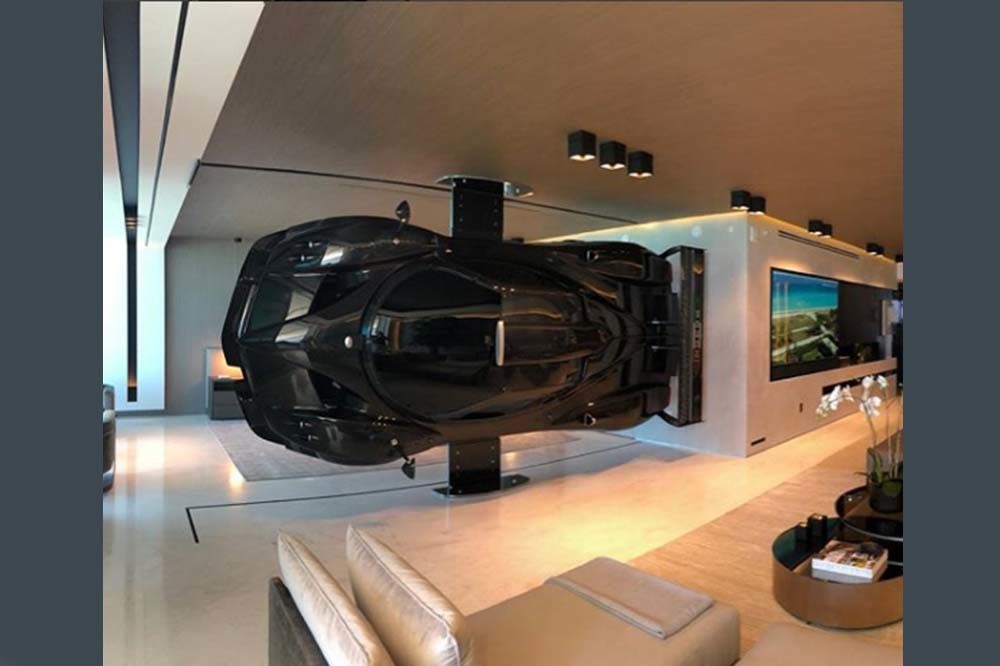 No es un decir, es literal, porque ahora una réplica de su Zonda al que llama "Dark Minion" decora el salón de una de las propiedades de Pérez en Miami, suspendido en el aire lateralmente gracias a dos enormes postes que sustentan el peso del coche. Sin duda es una forma alternativa de disfrutar de un coche excepcional e incorporarlo en tu día a día.