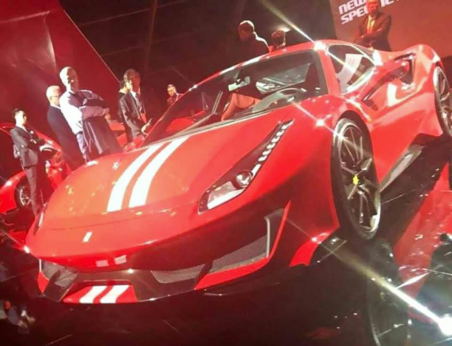 Ferrari desvelará en el próximo Salón de Ginebra una versión más deportiva y radical del 488 GTB. Hace unos días se filtraban los primeros datos acerca de ese nuevo coche (carrocería parcialmente en fibra de carbono, V8 más potente de la historia de la marca, etc), pero no teníamos una foto del coche en cuestión. Hasta hoy.