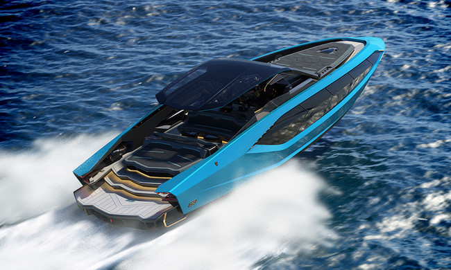 Además, según Lamborghini, en su categoría es todo un peso pluma: para la báscula en las 24 toneladas, lo que consigue gracias a estar concebido en fibra de carbono. Estos ingredientes le postulan como uno de los yates de lujo más rápidos: su velocidad máxima se cifra en 60 nudos (unos 111 km/h).