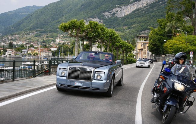 Con motivo de las celebraciones del evento en Villa d’Este (Italia), la gente de Rolls-Royce organizó una ruta por las carreteras que bordean el lago de Como, cerca de la frontera natural con Suiza. En total, una docena de Rolls, o dicho de otra forma, 4,6 millones de euros en coches.