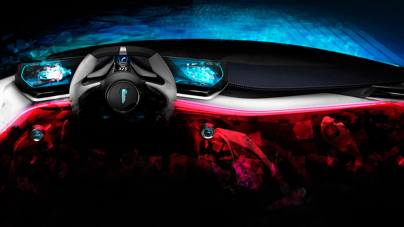 Si bien, por el momento, los teaser que mostraban su carrocería no eran muy esclarecedores, en las imágenes ahora desveladas se deja entrever su trasera en uno de los display del habitáculo. Deportividad y una cuidada aerodinámica se adivinan en la esculpida figura del PF0, lo que no es ninguna sorpresa dada su naturaleza y las cifras que ya ha adelantado Pininfarina.