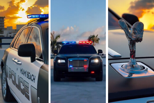 ¿Forma parte de un cutre remake de 'Miami Vice' que podrían estar rodando? ¿Ha sido incautado a un narcotraficante? No. Alguien en el ayuntamiento de Miami Beach consideró que sería una buena idea imitar a las policías de Dubai y Abu Dhabi y usar un Rolls-Royce como instrumento de comunicación para atraer a nuevos reclutas.