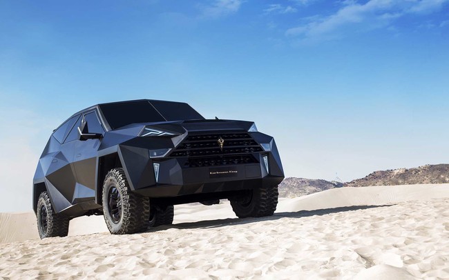 Su diseñador ha sido Luciano D'Ambrosio y define a su criatura como "una pieza de arte", qué va a decir él. Tiene tantas aristas que el Lamborghini Urus se sentiría humillado. El King está ensamblado sobre la base de una Ford F-550 (comparte la base con otra bestialidad como el Terradyne Gurkha), una ya de por sí enorme pick-up de carga que se transforma en una especie de SUV temible con una carrocería repleta de aristas, estilo diamante tallado, que recuerda a los blindajes de los vehículos militares.