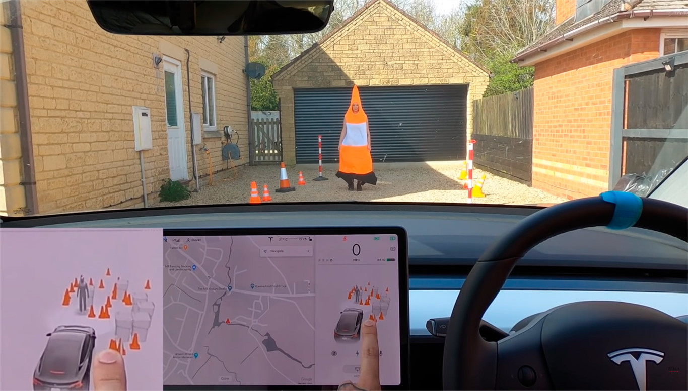 Cómo de preciso es el sistema de visualización de los coches de Tesla cuando conducen solos: es la pregunta que se ha hecho un entusiasta de la marca californiana que ha realizado diferentes pruebas con conos y obstáculos varios, en los que se incluye su propia, y paciente prometida, disfrazada de cono. ¿Consigue engañar a esta tecnología?