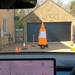Primeramente coloca varios conos de diferentes tamaños y una baliza, colocados bastante juntos y en línea frente al Model 3, excepto la baliza. En este primer supuesto el sistema se muestra algo confuso, porque el display del coche 'pinta' más conos en línea de los que hay, y uno más lejano, que corresponde seguramente a la baliza de carretera.