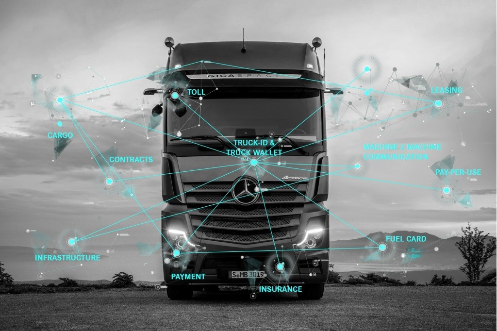 La división de camiones de Daimler está inmersa en un proyecto piloto basado en la digitalización de sus vehículos. Con el objetivo de facilitar el trabajo a los conductores, ha desarrollado una forma para que se comuniquen autónomamente con otras máquinas y realizar transacciones legalmente vinculantes de forma segura y evitando fraudes, como en el caso de los pagos.