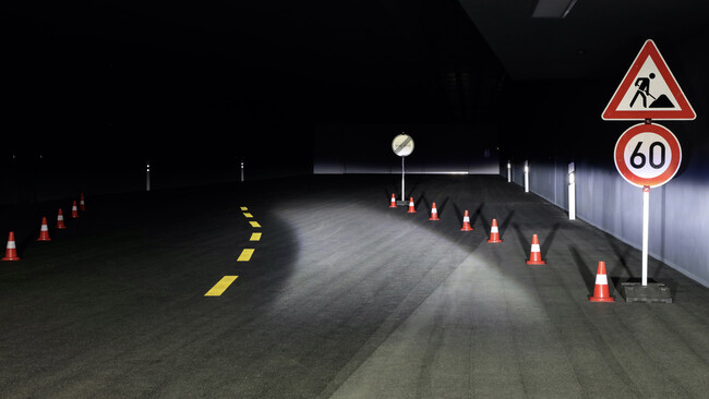 La nueva función para zonas de obras y estrechamientos de la vía es similar, pero tiene otro propósito más allá de mejorar la iluminación del carril por el que circula el vehículo.