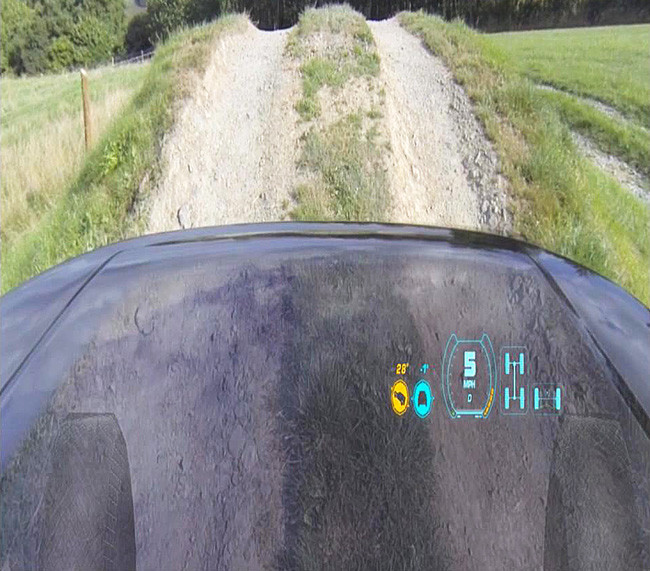 Este a su vez crea una reproducción del terreno sobre el que está circulando el coche, y lo proyecta sobre el parabrisas ocupando el espacio que visualmente ocuparía el capó y el vano motor.
