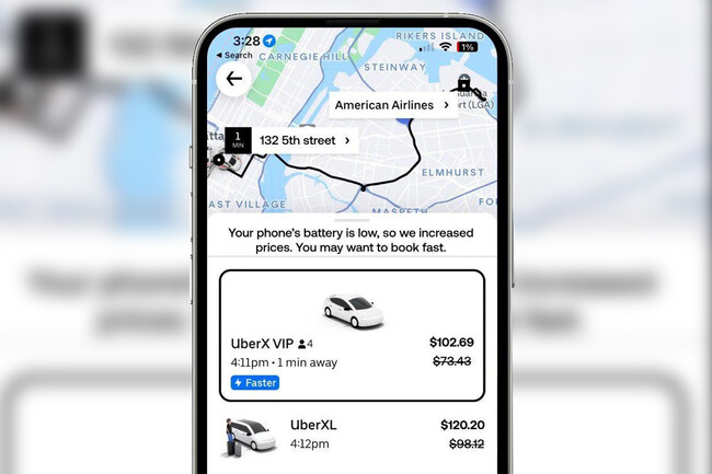 "¿Uber incrementa los precios cuando la batería del móvil está baja?"