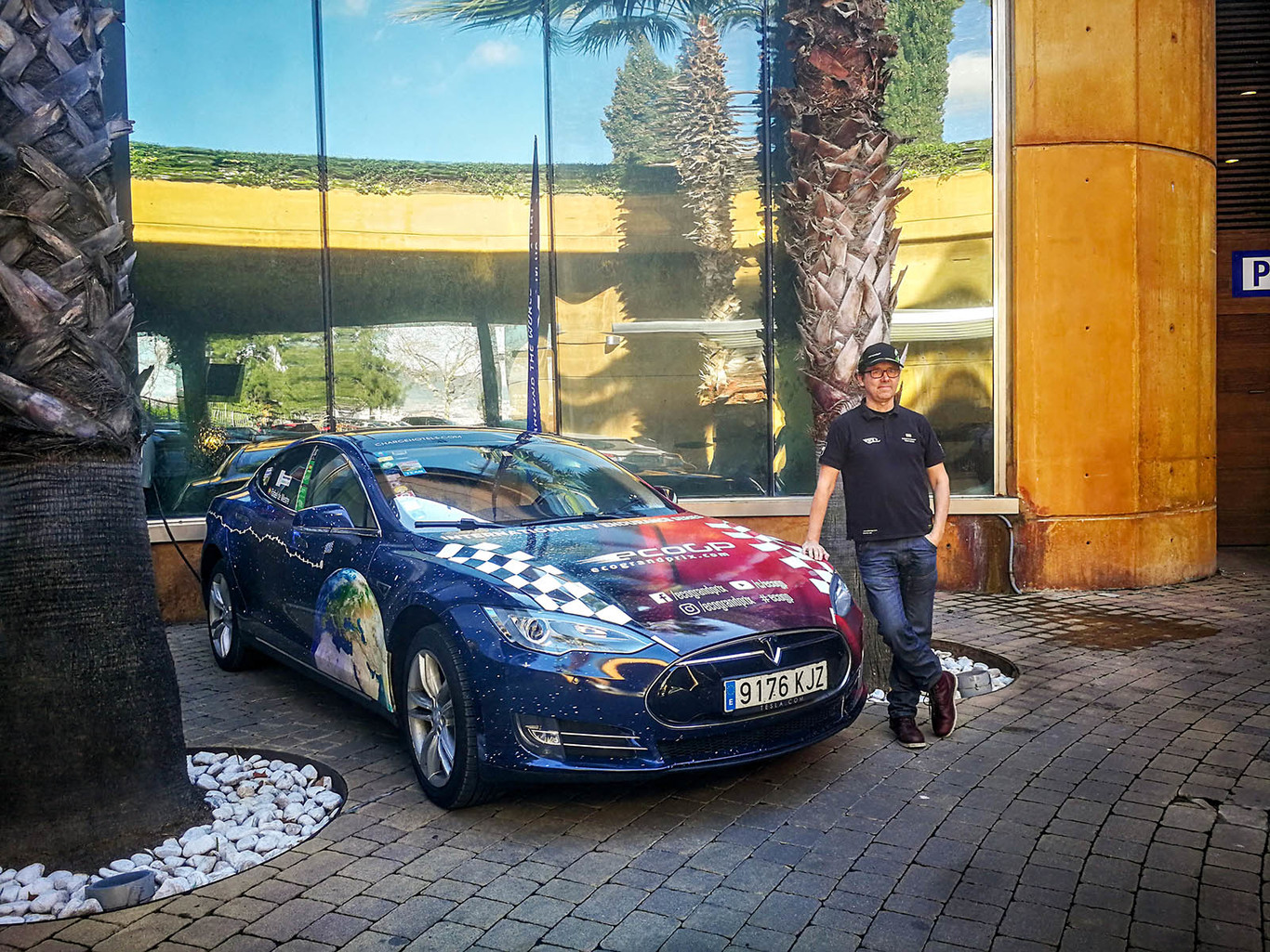 Rafael de Mestre junto a su Tesla Model S P85+ con el que realizará por tercera vez la vuelta al mundo en coche eléctrico.