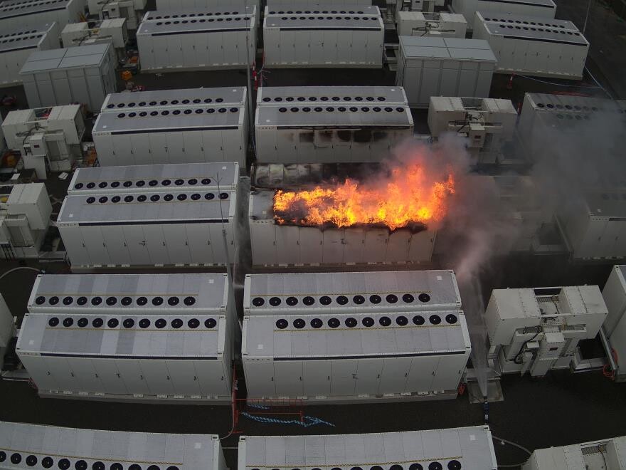 Encontraron que una batería de litio de 13 toneladas dentro de un contenedor de envío fue uno de los detonantes del fuego, que se extendió a un segundo paquete de baterías.