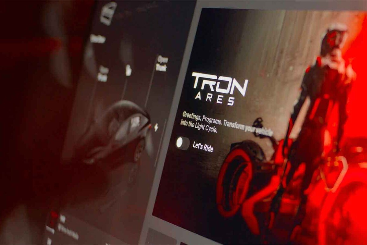 Tesla se ha aliado con Disney para promocionar su último título: 'Tron Ares'. Se materializa en una actualización de software para su dos modelos más vendidos, los Tesla Model Y y Model 3, además de para la Tesla Cybertruck. Aquellos que la instalen, pueden cambiar la visualización del coche en la pantalla para convertirlo en la futurista moto de luz de la saga Tron en la navegación 3D. También incluye animaciones varias o la iluminación ambiental en intenso rojo, santo y seña en esta tercera entrega.