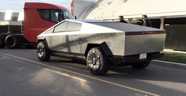 La imagen, difundida por la cuenta de Instagram Teslacybertruck, es la primera que se conoce de los dos vehículos en versión concept posando juntos, pero para más inri no lo hicieron solos. A la derecha de la fotografía puede verse además a Elon Musk, CEO de la compañía, paseando y observando dos de sus próximos mochuelos.