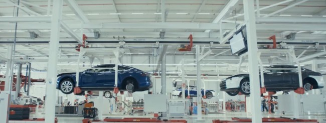 En estos dos vídeos podemos ver parte del proceso de montaje del Tesla Model S y del Model X. Estas cadenas cada vez están más robotizadas, aunque hay operaciones que todavía necesitan de la mano y el ojo del ser humano. Dependiendo de las marcas y los modelos, hay mayor o menor intervención humana.