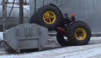 Cheburator, el nombre lo dice casi todo. Realmente sólo viendo su nombre no podemos intuir que se trata de un extraño todoterreno ruso con enormes ruedas que le permiten moverse por la tierra destrozando árboles o nadar gracilmente cual cisne por un lago, pero sí podemos imaginarnos que no es un coche normal.