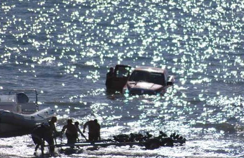 -Subestimaron- Sobreestimaron las capacidades 4x4 de su Dodge RAM 2500 y les sorprendió la subida de la marea, por lo cual la pick-up quedó sumergida prácticamente del todo. A eso de las 11 de la noche volvió a bajar la marea y el vehículo fue "rescatable", aunque habría que ver en qué estado quedó el interior o la mecánica.