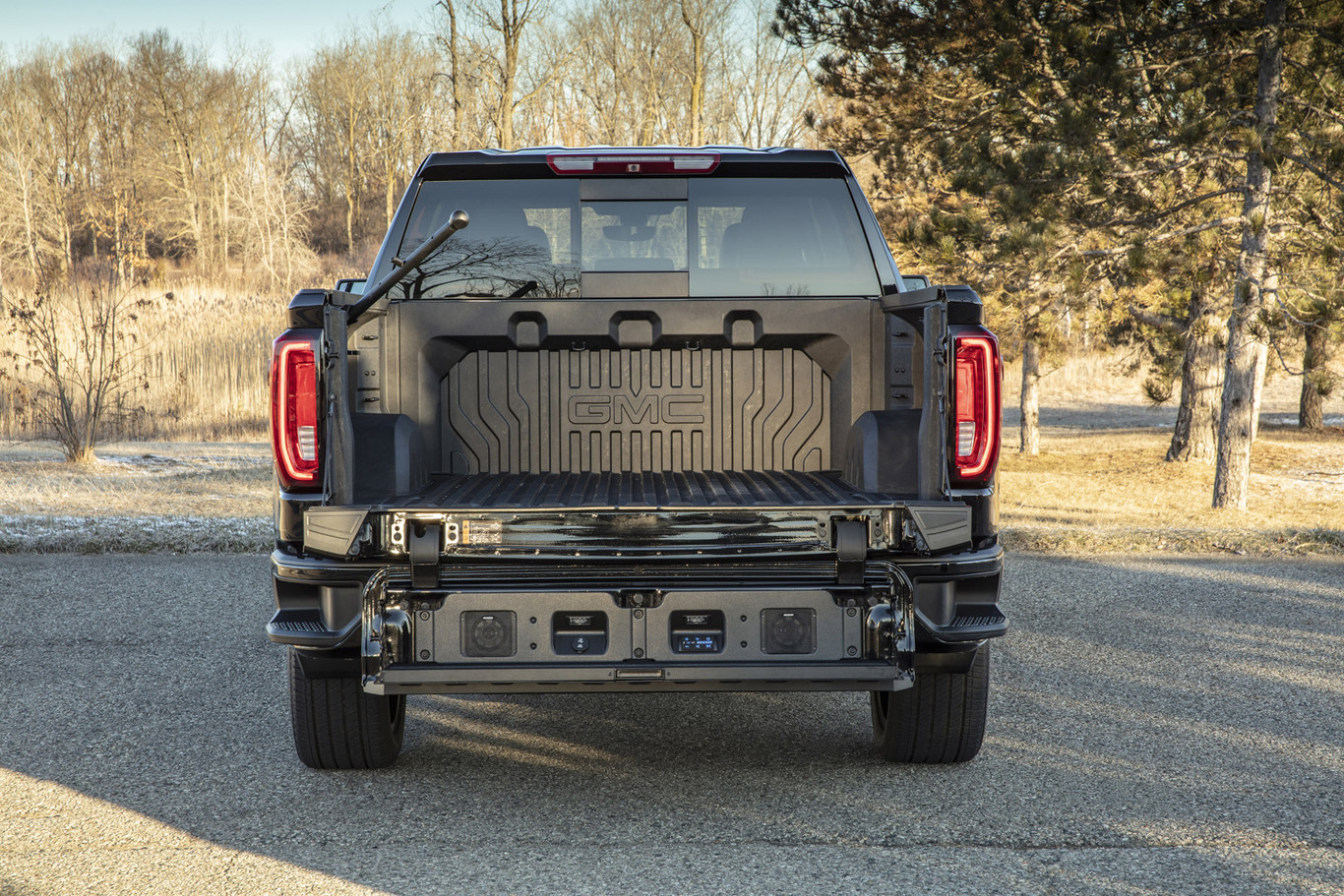 Según el grupo de Detroit, la fibra de carbono ofrece la mejor protección ante muescas y rasguños, así como una mayor resistencia frente a la corrosión. Además, el cajón CarbonPro pesa un 25 % menos que un cajón convencional de acero, lo que supone reducir el peso de este Sierra en unos 27 kilogramos.