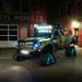El equipo Hoonigan construyó a medida la carrocería ensanchada, los parachoques personalizados, la iluminación auxiliar (con una barra LED de 30" en el parachoques delantero y una de 50" de Rigid Industries en la rejilla de techo, que también funciona como un portacargas extraíble y pasamanos para hacer trucos con la tabla) y el resto de accesorios.