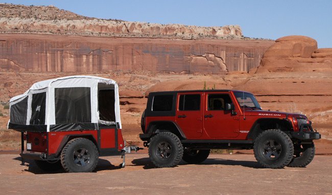La gente de Mopar y Jeep han vuelto a colaborar para poner en el mercado dos versiones de los Jeep Camper Trailers, remolques adaptados para las duras travesías por el desierto de Utah o los caminos empedrados de cualquier paso de montaña, y con capacidad para albergar a una familia de cuatro ocupantes.