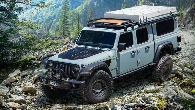 El interior presume de ser un auténtico todoterreno camperizado. Jeep no ha publicado imágenes del habitáculo -y del exterior únicamente hay dos- pero asegura que podemos encontrar cocina, nevera, estantes de almacenamiento, asientos integrados e incluso espacio para una mesa.