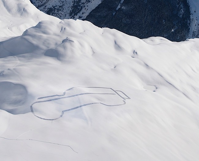 Ahora, como homenaje a aquel dibujo sobre la arena del ingeniero Maurice Wilks, cuyo propósito era mostrar a su hermano el todoterreno que pretendía fabricar, la firma británica ha decidido celebrar los 70 años del Land Rover Defender perfilando su silueta sobre la nieve de los Alpes.
