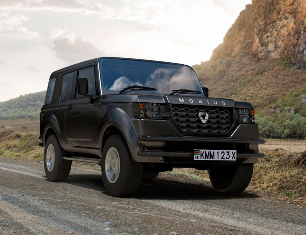 El modelo de las imágenes es la segunda generación del SUV Mobius II, que en esencia es un vehículo de bajo coste (low-cost) y sencillo planteamiento, fabricado en Kenia y pensado para precisamente facilitar la movilidad en los lugares de África con menos recursos.