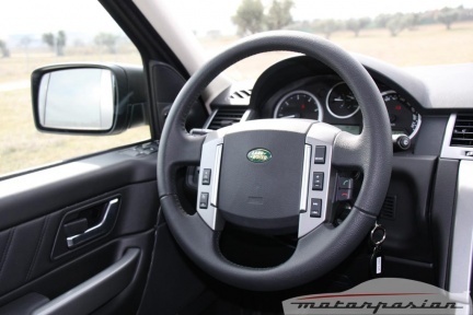 Sentado al volante del Range Rover Sport, la sensación de amplitud es una constante, ya que en él todo es grande, empezando por el volante, que además de un aro de gran diámetro, incorpora los mandos para el manejo de la radio y el control de velocidad a ambos lados.