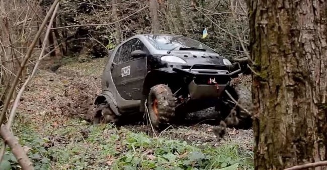 Así que se puso manos a la obra para convertir su fortwo en un todoterreno. Para ello no sólo invirtió tiempo y dinero, también piezas de Mitsubishi, Volkswagen y Honda. El resultado es sorprendente y, aunque no tenga tracción total, deja en ridículo a cualquier SUV. Eso sí, a base de coger carrerilla y beberse los embragues.