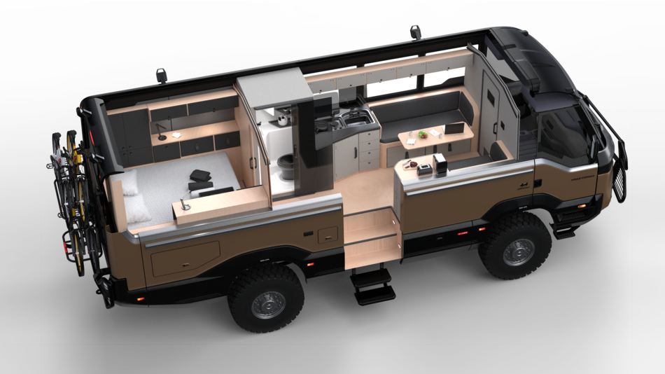 En el habitáculo, aunque el cliente lo podrá configurar al gusto, se ofrecen desde zona de cocina (con fregadero, nevera o fogones) o de dormitorio con una gran cama y suelos de PVC, hasta un baño completo con lavabo, retrete y ducha. Además, la cabina puede estar separada del habitáculo trasero, aunque con una puerta que conecta la zona de conducción con la zona de vivienda.