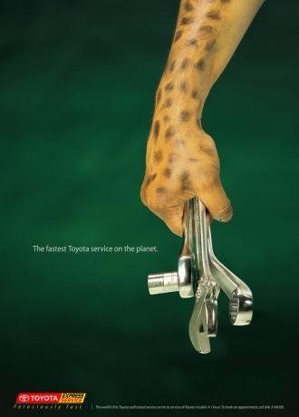 Esta es la promoción de Toyota de su servicio rápido en una hora. Rápido y feroz, como el guepardo.
