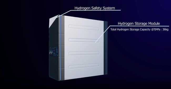 La capacidad máxima de cada depósito es de 9,1 kg de hidrógeno a una presión de 70 N/m². En total, los cuatro presentes en el módulo consiguen una capacidad total de 36,4 kg. En comparación, los tres depósitos del Mirai pueden albergar sólo un máximo de unos 7,8 kg.