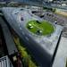 Así, el concesionario cuenta con una tienda al aire libre, librería y zona de exposición donde los coches parece que están en movimiento. Incluso una pequeña carretera se ha creado y plegado sobre sí misma para alojar una pista de pruebas que se prolonga hasta formar el techo y las paredes del edificio principal.