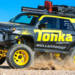 Además del evidente color negro mate de la carrocería y detalles en tono amarillo (llantas, adhesivos, suspensión, etc...), junto a distintivos Tonka, esta bestia equipa paragolpes específicos, de aspecto más robusto, taloneras con escalones para "trepar" al vehículo, plataforma de techo con tienda de campaña y una moldura con luces LED, escalera, winch delante y detrás, portarruedas trasero y unas llantas Ultra Motorsport de 20 pulgadas con neumáticos todoterreno Mickey Thompson Baja MTZ.