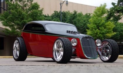 Y ahora hablando del Chevy “The Instigator”, en este precioso sedán de 1934 se han invertido más de 4.000 horas de trabajo y ha sido portada de multitud de revistas del sector y protagonizado numerosos eventos de la televisión y el cine. Como siempre en este tipo de coches, la apariencia es lo que más llama la atención, pero si os digo que bajo de ese precioso capó lleva montado un big block ZL1 Chevrolet V8 de 512 ci (8.390 cc) y 675 CV de potencia seguro que la estética deja de ser el punto fuerte de este coche. Y como se puede ver, la ruedas encargas de pasar la brutal potencia de este motor no se quedan atrás, 19’’ para las delanteras y unas monstruosas llantas de 24’’ para las traseras. Y como siempre, un interior de lujo no puede faltar, dominado casi íntegramente por cuero rojo.