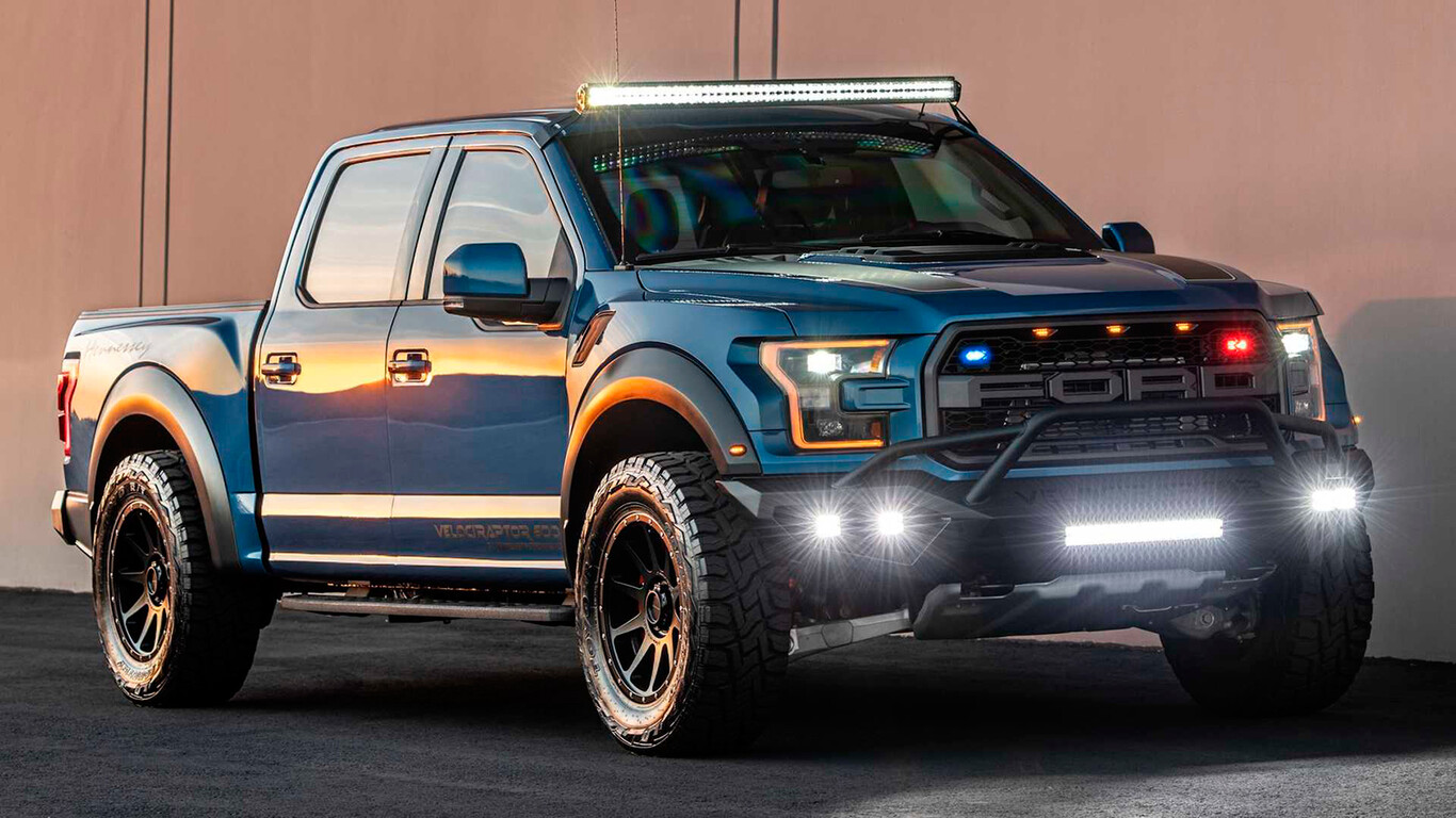 El superlativo VelociRaptor, una vuelta de tuerca sobre la Ford F-150 Raptor por cortesía de Hennessey, se convierte en esta bestia blindada, capaz de soportar explosiones y las balas de un fusil de asalto.