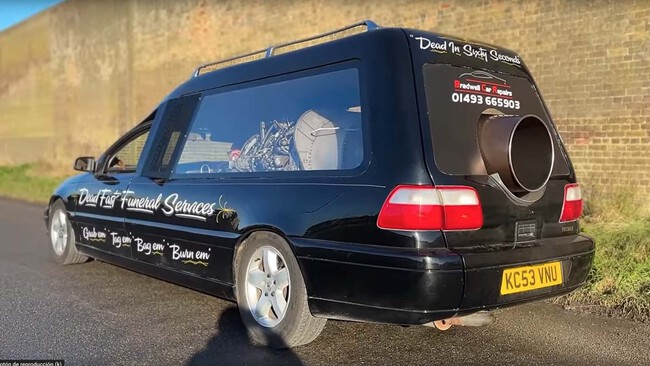 Cuando mucha gente piensa en modificar un coche, baraja opciones muy comunes, como cambiar las llantas, sustituir el escape de serie por uno que suene más y mejor o instalar una suspensión que mejore el comportamiento dinámico. Lo que no se le ocurre a tanta gente es meter un motor a reacción en un coche fúnebre.
