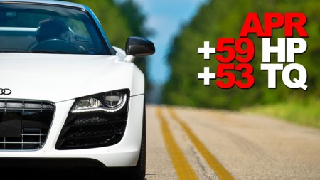Tras sustituir la ECU de fábrica por una firmada por APR, la potencia máxima aumenta hasta los 591 CV y el par motor máximo alcanza ahora los 602 Nm. Con esto el R8 V10 entra de lleno en el territorio del R8 GT o el Lamborghini Gallardo Superleggera. El precio de la mejora es de unos 1.100 euros.