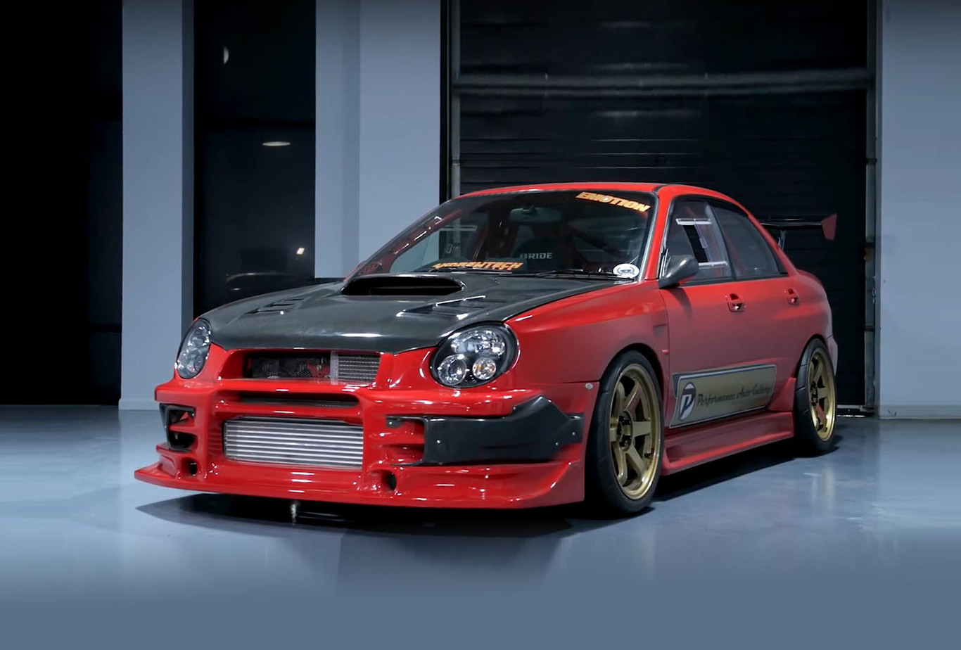 Del Subaru Impreza WRX originial poco queda, salvo quizá la plataforma y el bloque motor. La carrocería es diferente (las aletas son 20 mm más anchas, por ejemplo), el vano motor ha sido alisado, el motor está preparado por completo y asociado a un nuevo cambio manual de competición, lleva un gato neumático de competición y hasta cambió de sitio el volante, pasándolo de la izquierda a la derecha para darle ese toque “auténtico” de JDM.