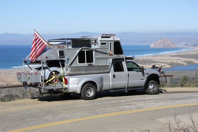 Lo que un particular ha puesto a la venta en California es totalmente indescriptible: sobre un Ford F-350 se decidió montar la madre de las caravanas. Bautizado como 'Bulla Matari', este vehículo a lo Mad Max fue creado para albergar en el interior (según descripción) un Porsche Spyder, una motocicleta delante, un kayak de casi 5,5 metros encima y varias bicicletas. ¿Estás dispuesto a poseer esta pickup autocaravana por 30.000 dólares?