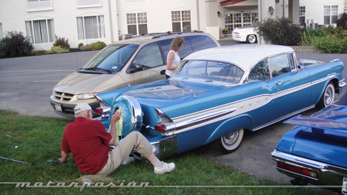 Y si hablamos de bellezas, los Hot Rods clásicos como este de la imagen estaban por cualquier rincón. Preciosos los mires por donde los mires. Y alguno incluso venía con mecánico incluido. No es el primero que veo así, incluso por aquí.