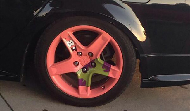 Prohibido ir este año a la playa sin unas llantas acorde al destino. Así se lo han debido tomar los propietarios de estos coches que debe ser que veranean en Fondo de Bikini y, ni cortos ni perezosos, llevan al mismísimo Patricio Estrella en las llantas de su coche. Un interesante toque de humor que se aleja mucho de los cánones de estética habituales.