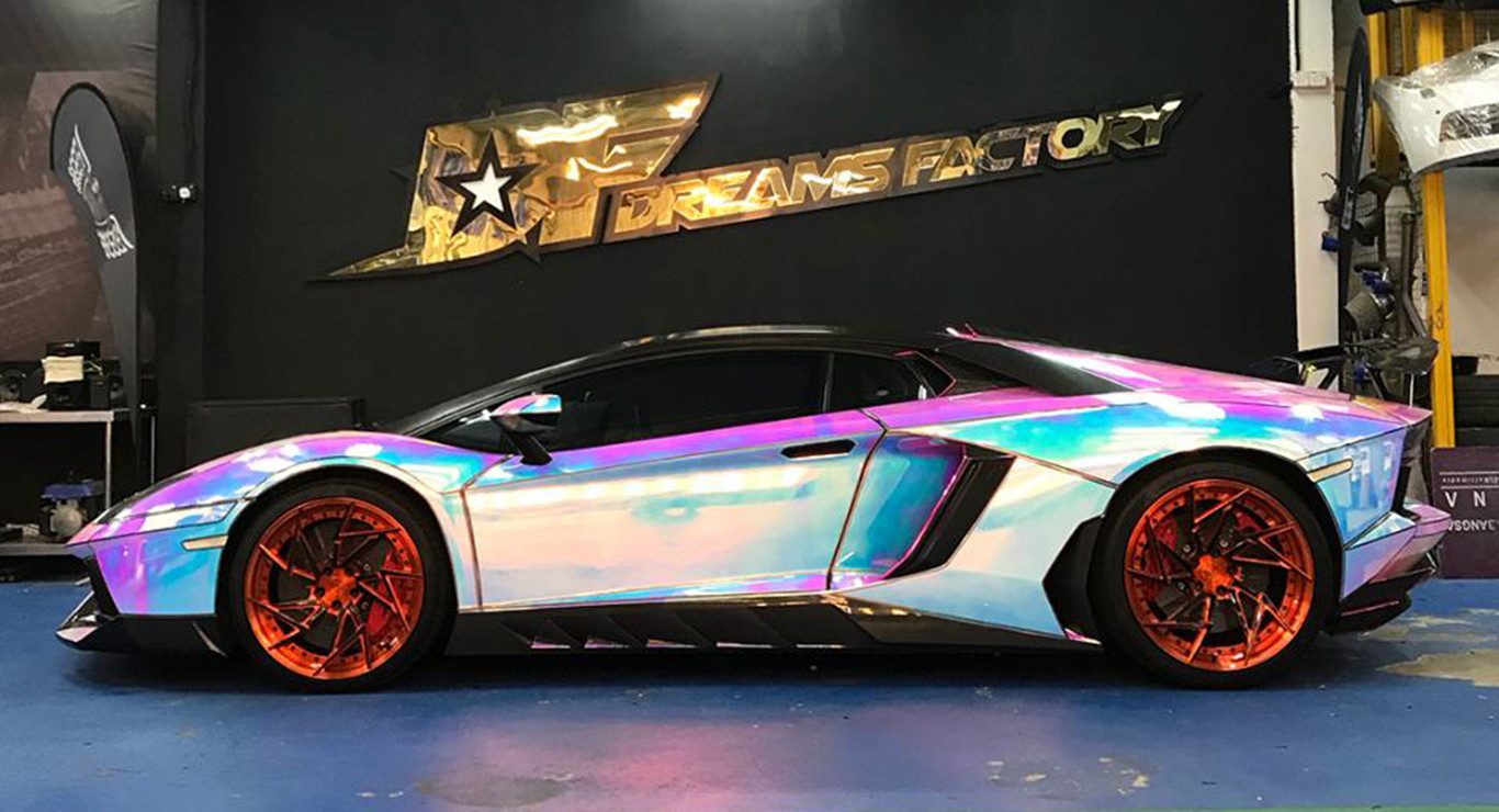 Este preparador con sede en Malasia, limita su hacer a la estética, ofreciendo diferentes vinilados para superdeportivos, coupés o incluso urbanos. Se atreven con todo. En el caso de este Lamborghini Aventador LP700-4 han optado por lo que ellos denominan Wrap Hologram + 3M Reflective Tron, o lo que es lo mismo: un vinilado de holograma que muta del rosa al azul según la luz le de, aunque no es de extrañar que saque aún más colores. ¿La guinda? Unas llantas naranjas que no es que combinen mucho con la carrocería. Si es que algo puede combinar con ella.