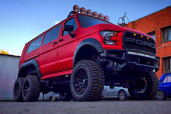 Las preparaciones de coches que vienen de Rusia suelen ser sorprendentes. Desde SUV con motores de tanques a extraños engendros con base Lada. Y también hay creaciones muy intresantes, como las de Ford Market, que han creado un Ford Escort RS Speedster y una furgoneta Ford E-Series con frontal de Ford F-150 Raptor y un doble eje motriz detrás.