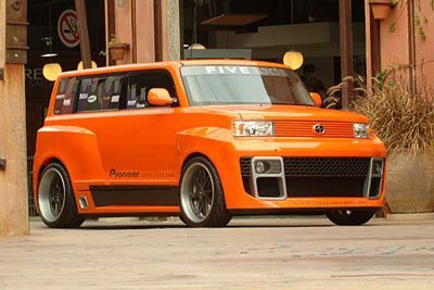 El coche perfecto para ser el rey en los botellones. Eso es lo primero que he pensado cuando he visto las fotos de este Scion xB preparado por 5-Axis. Si abrimos el portón trasero, modificado como una cabina de un DJ, nos encontramos con un equipo completo para realizar sesiones para tus amigos. El equipo lo componen dos Pionner CDJ-1000, una mezcladora DJM-600, también de la casa Pioneer y dos pantallas de 8’’ AVD-W8000 en las mostrar los vídeos de la música que se está pinchando.